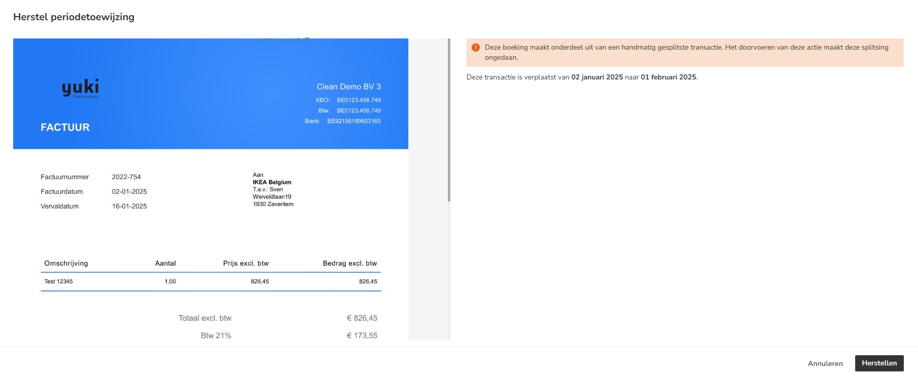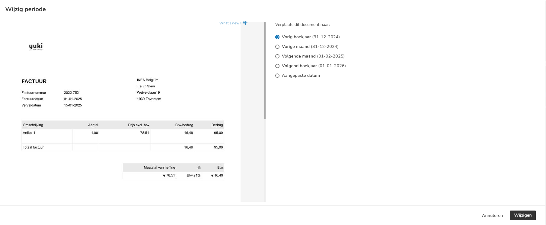 Periode wijzigen (banktransactie of document verplaatsen)