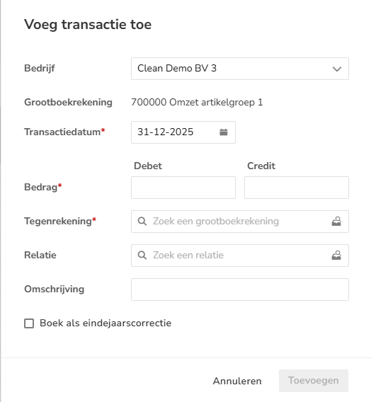 Transactie toevoegen