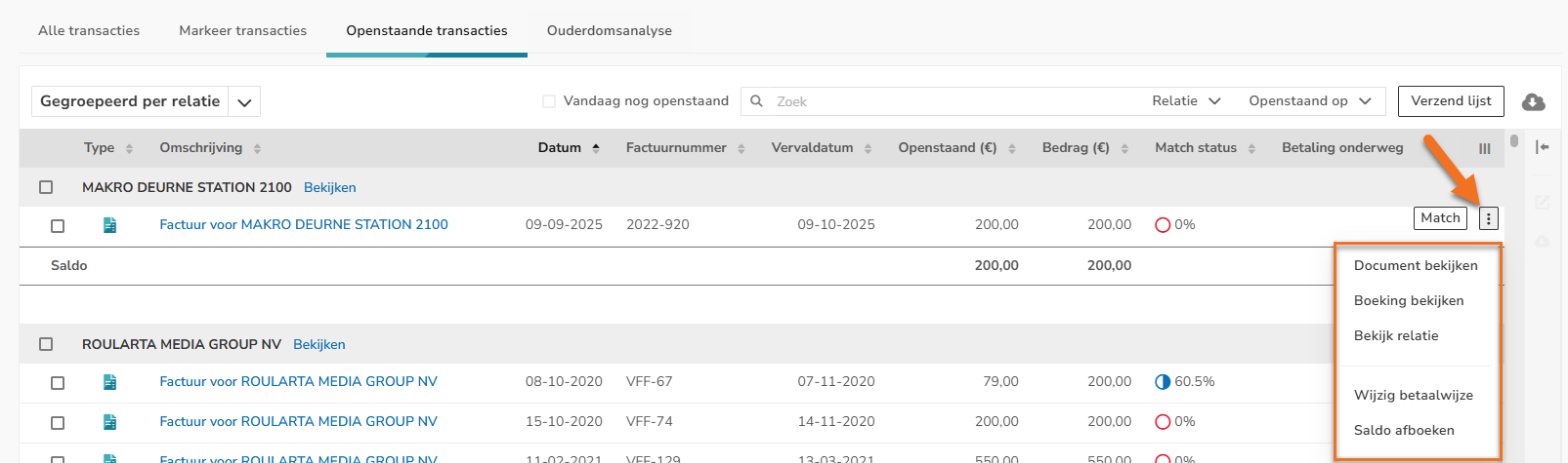- Openstaande transacties per relatie