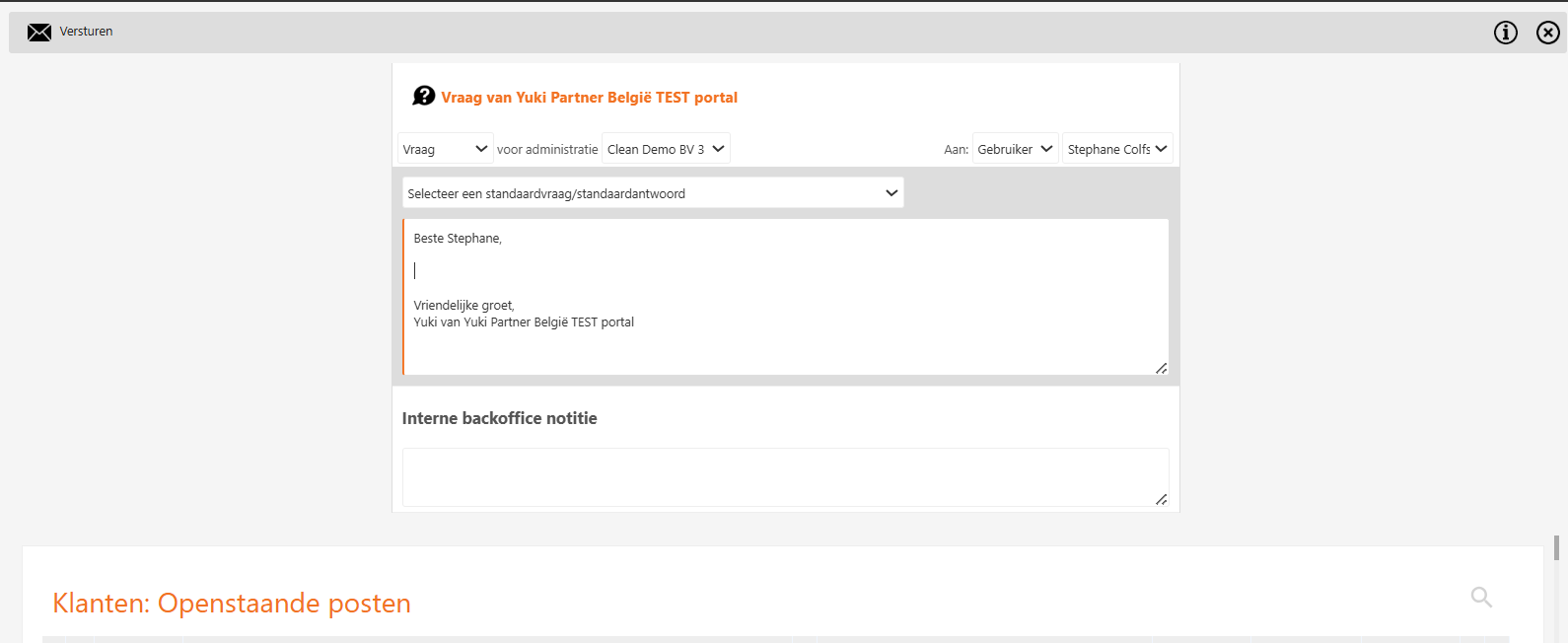 - De lijst met openstaande posten naar een gebruiker (ondernemer) sturen