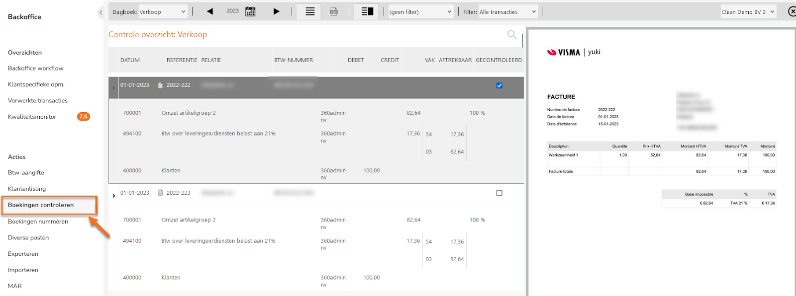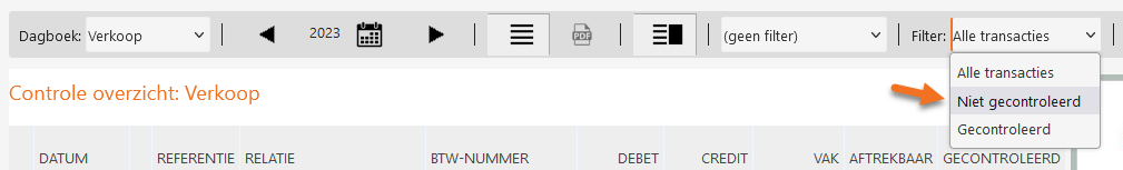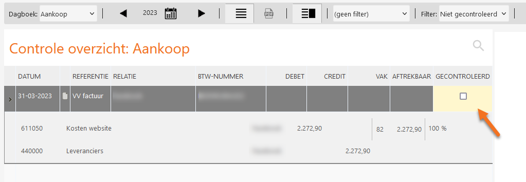 Een tip hierbij is om te filteren op enkel de Niet gecontroleerde boekingen. De reeds gecontroleerde zullen niet zichtbaar zijn en eenmaal je een document dan afvinkt als Gecontroleerd zal het verdwijnen uit de lijst zodat je direct naar de volgende gaat. Alle gecontroleerde boekingen kan je wel steeds terugvinden via de filters bovenaan.