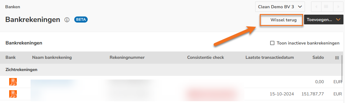 Als tijdelijke oplossing kun je terugschakelen naar de vorige interface via de knop 'Wissel terug' en daar het beginsaldo van de bankrekening invoeren.