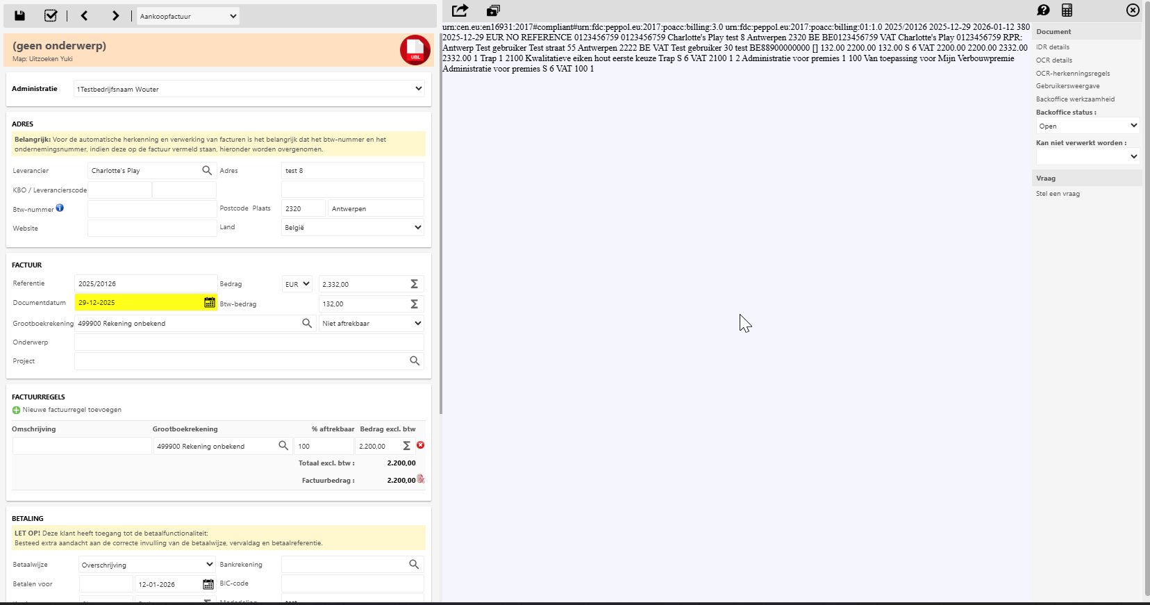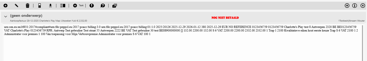 Voor dergelijke facturen ontwikkelen wij een functie die de XML-inhoud omzet in een leesbare PDF. Deze zal de belangrijkste en verplichte gegevens bevatten, maar blijft beperkt omdat niet alle mogelijke Peppol-velden kunnen worden weergegeven en omdat bedrijfsspecifieke of uitzonderlijke elementen kunnen ontbreken.